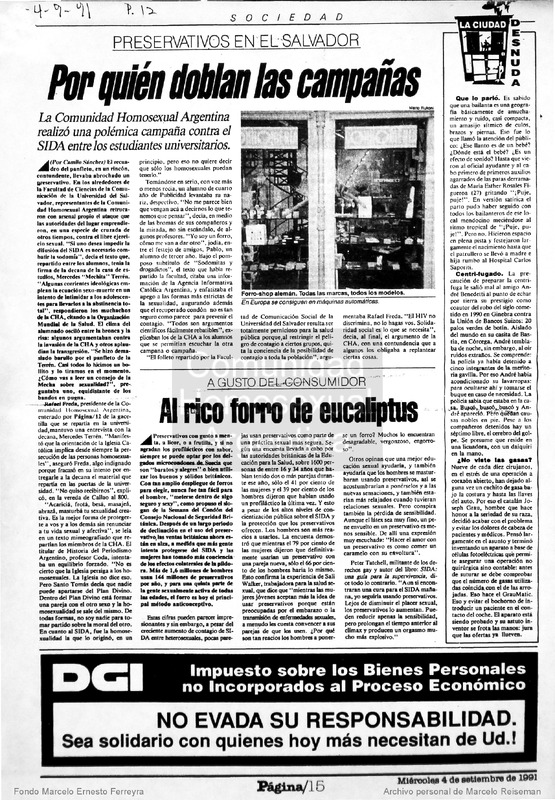 Preservativos en el salvador por quien doblan las campañasArtículo de Página 12 sobre la campaña de uso de preservativos en El Salvador y la postura de la Iglesia católica.