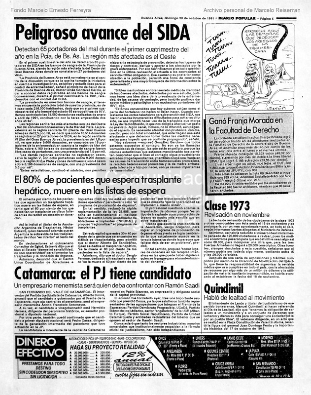Vivir con SIDAEste artículo de la revista Página/30 explora la realidad de las personas que viven con VIH/SIDA en Argentina, más allá de las cifras y el miedo. A través de testimonios y reflexiones, se aborda la discriminación, la falta de apoyo estatal y las diferentes formas en que los afectados enfrentan la enfermedad. Se mencionan diversas personalidades y organizaciones que trabajan en el tema, como Alejandro Zalazar de la CHA, el pastor Lisandro Orlov y el escritor Néstor Perlongher.