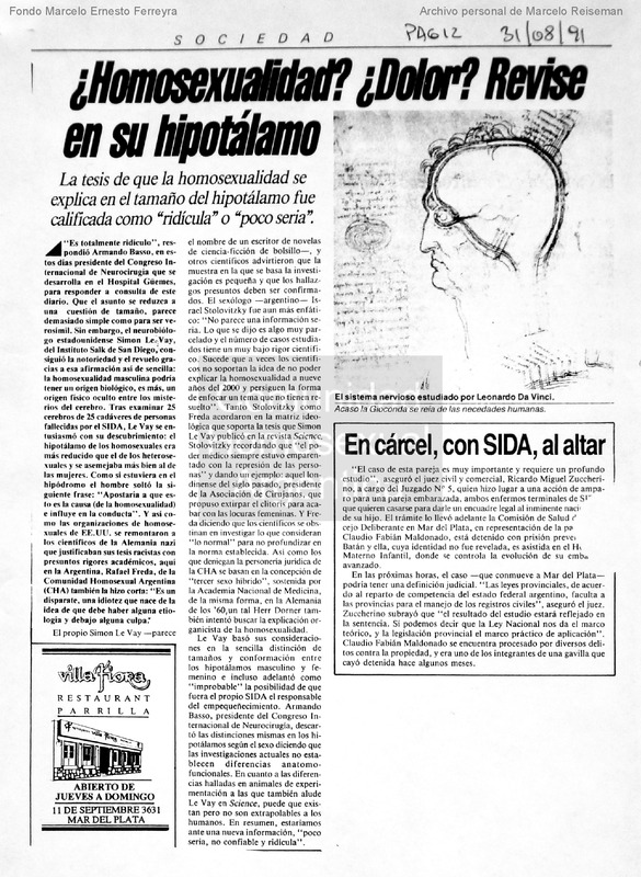 Homosexualidad dolor revise en su hipotálamoArtículo periodístico que aborda el tema de la homosexualidad, el dolor y la represión social.