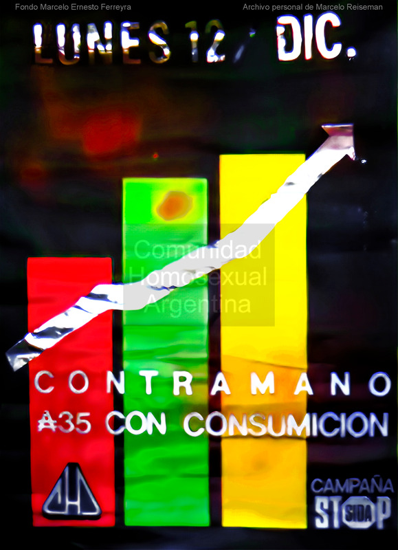 Aniversario ContramanoAfiche de la Comunidad Homosexual Argentina (CHA) para celebrar el aniversario de la discoteca Contramano. El evento se enmarca dentro de la campaña "STOP SIDA". La celebración buscaba unir a la comunidad en un espacio de festejo y visibilidad.
