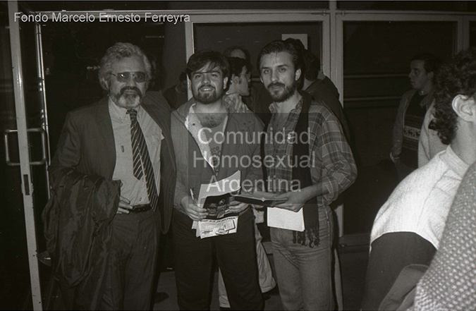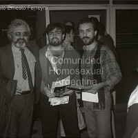 - Foto de Gustavo Pecoraro, Roberto Rangoni y Retamar en la charla sobre discriminacion y sexologia, realizada en el Centro Cultural General San Martin (CCGSM)