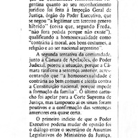 - Artículo del periódico "Jornal do Brasil" que informa sobre la decisión del presidente Carlos Menem de recomendar la legalización de la Comunidad Homosexual Argentina (CHA). Esta acción fue producto de la presión de organizaciones de gays y lesbianas estadounidenses durante la visita de Menem a Estados Unidos. Rafael Freda, presidente de la CHA, es citado en el artículo.