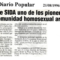 - Crónica sobre el fallecimiento de Carlos Jáuregui, referente central de las luchas contra la discriminación sexual en el país. El artículo destaca su activismo por la inclusión de una cláusula antidiscriminatoria en el Estatuto de la Ciudad. Se recuerda su participación fundamental en la fundación de la CHA y su posterior liderazgo en la organización GAYSDC.